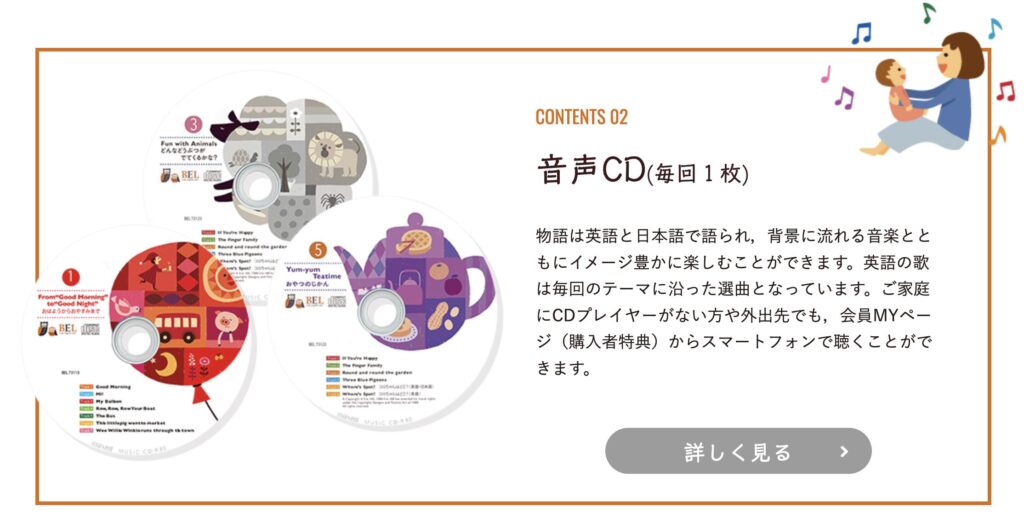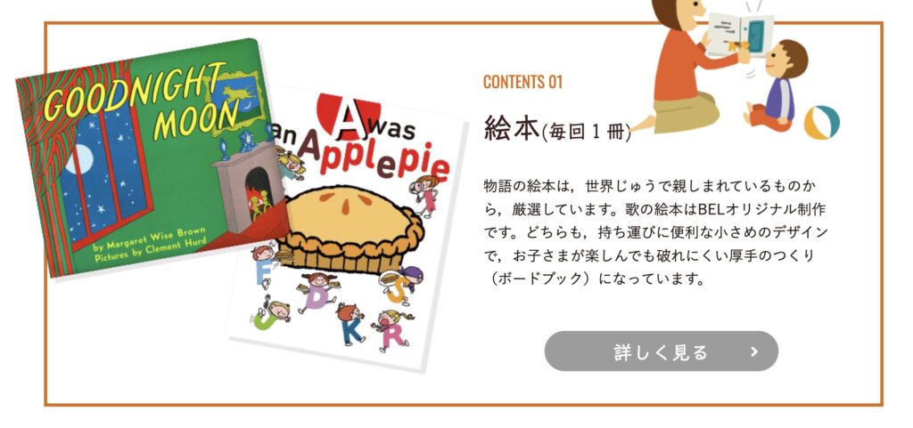 - 英語を勉強として教えるのではなく、遊びや読み聞かせを通して英語に親しめるよう設計されている