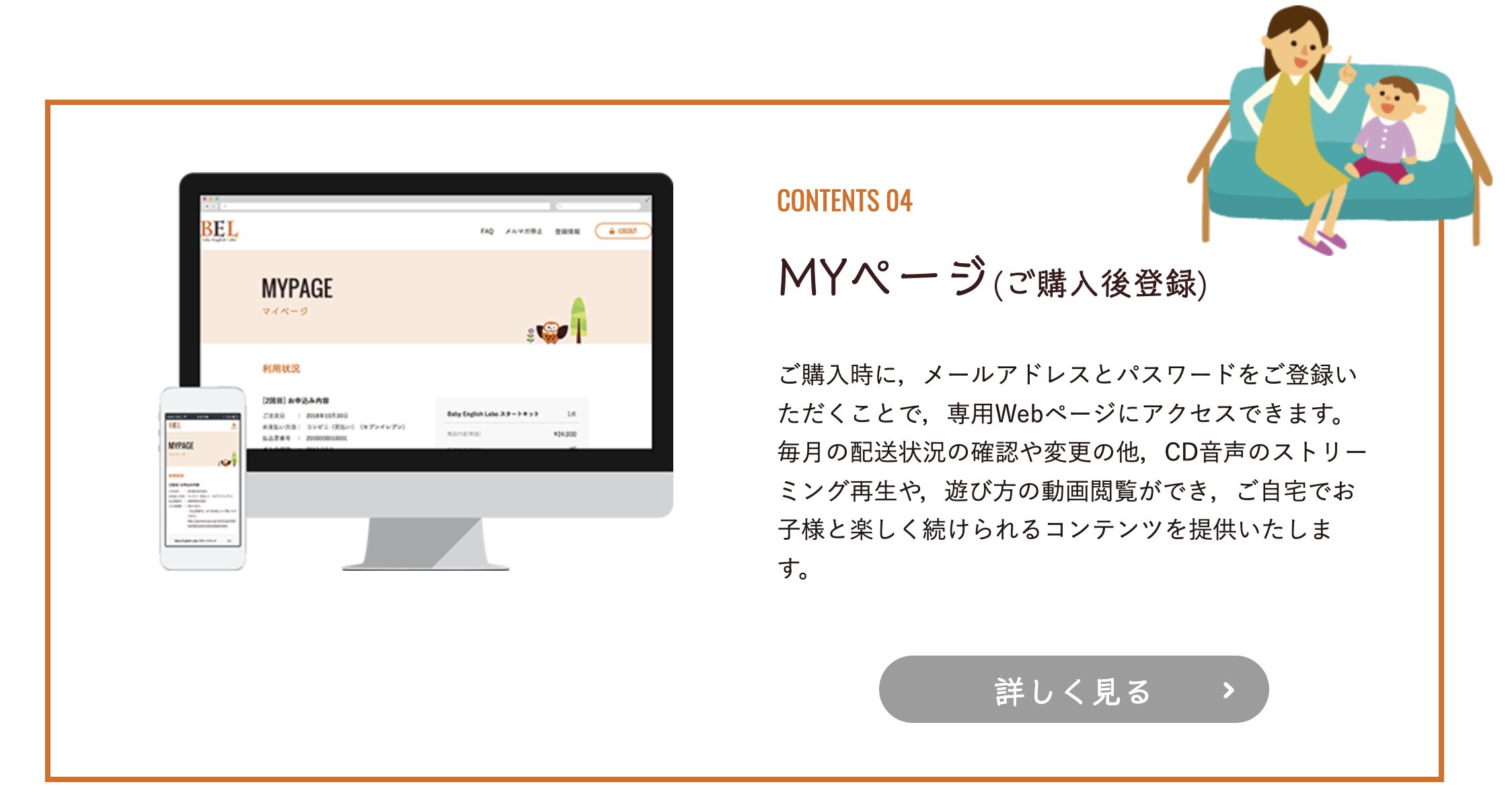 - Baby English Laboは英語絵本と音声教材(CDやスマホ音声)を通して、親子で楽しく英語に触れられるプログラム