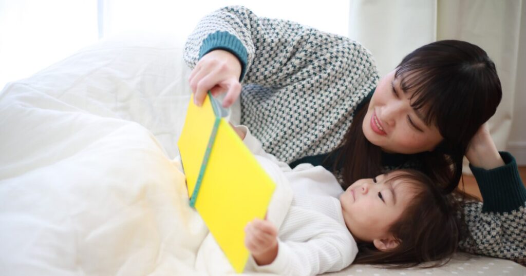 寝る前に絵本を読むことで気持ちが落ち着き、自然と眠りにつきやすくなります。