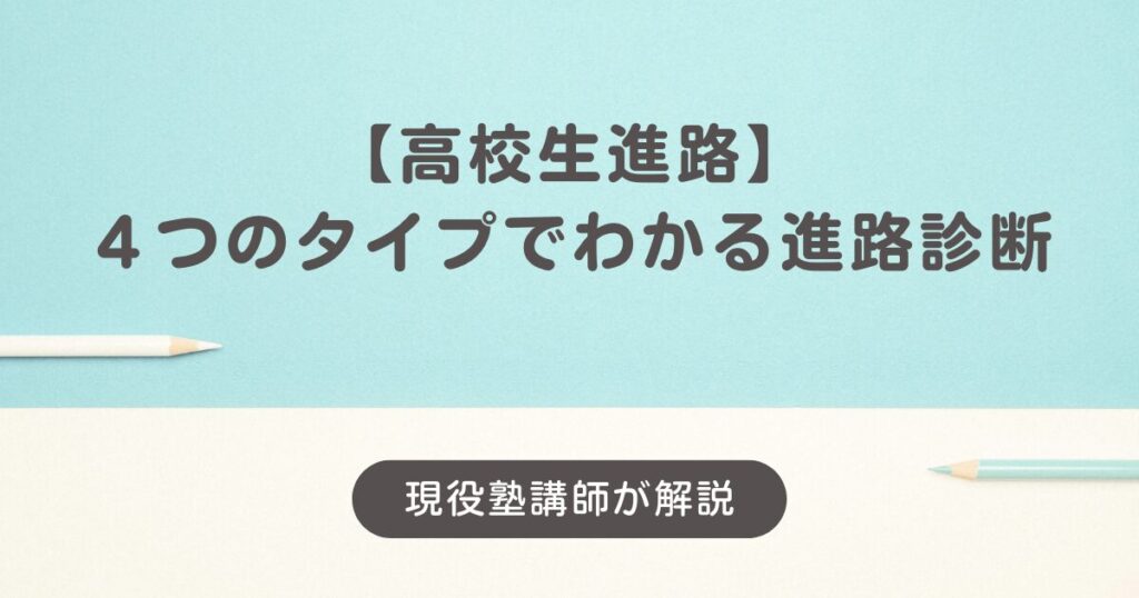 この記事でわかること 3分でわかる自分に合った進路タイプ(理系・文系・医療系・IT系) 自己分析の具体的な方法とステップ 進路決定に役立つ高校生向けの教材・行動指針 4つのタイプでわかる進路診断 Aタイプ:理系のおすすめ学部と職業 【学部例】工学... -