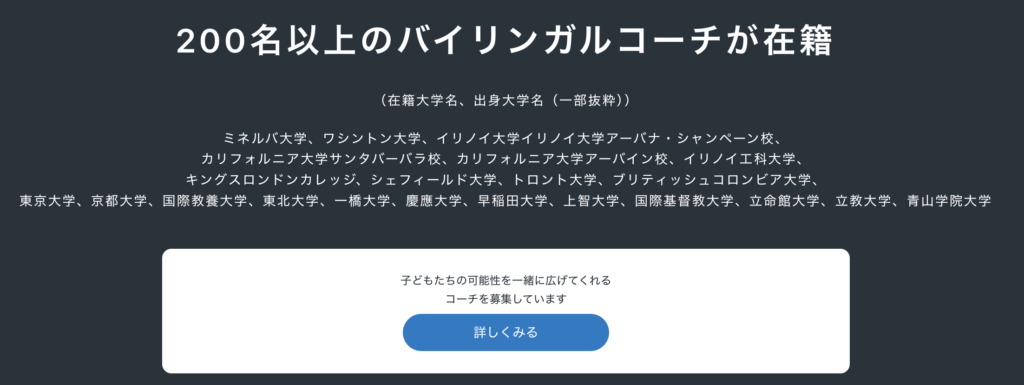 | 高水準コーチによる指導 | 採用率の低い厳選されたコーチが担当。質の高い指導で効率よく上達が期待できます。 |