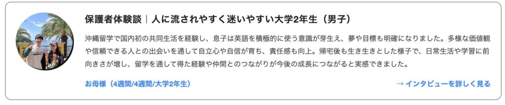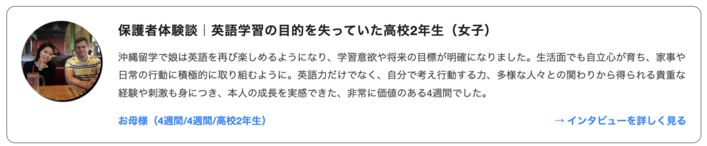 - 「初めての留学でも安心だった」「英語が話せるようになった」「自信がついた」などの声あり