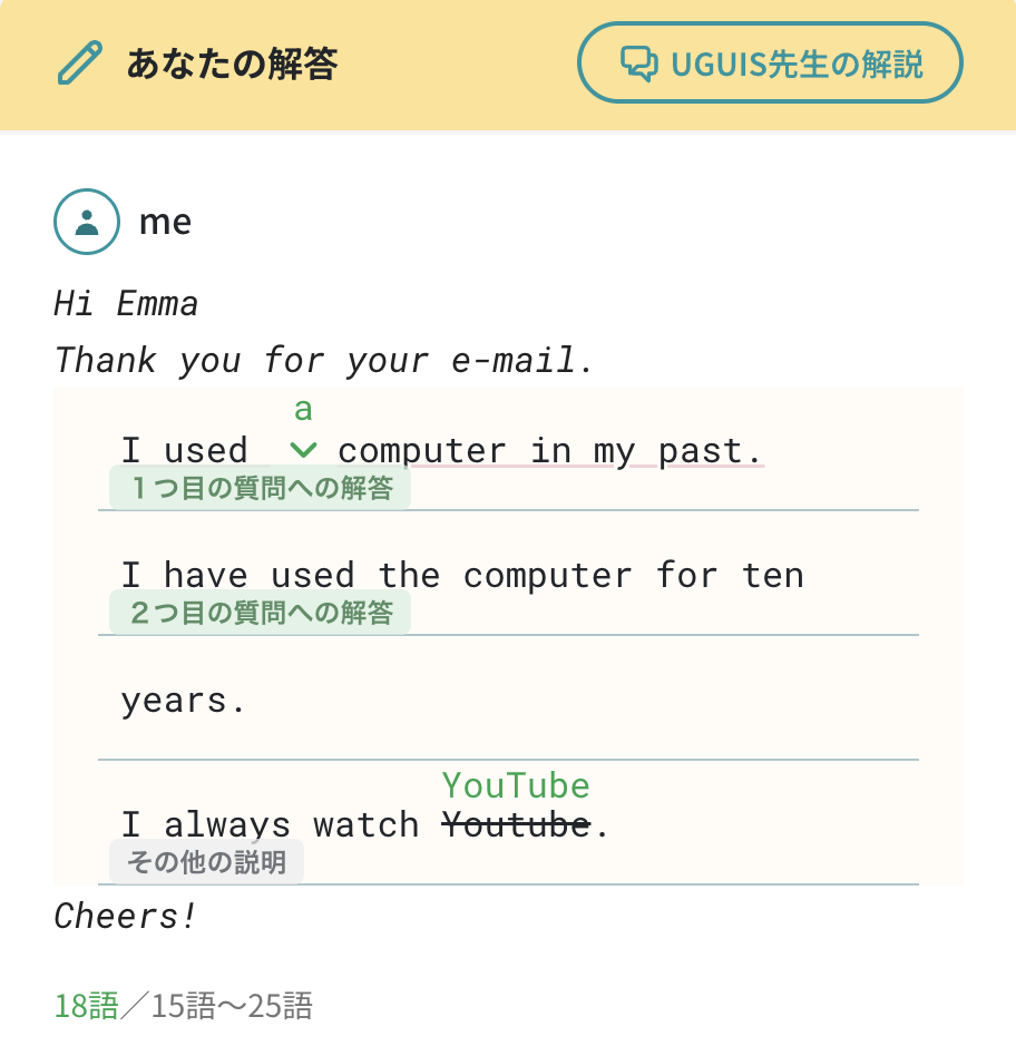 英作文のAI添削を使う方法もあるので使ってみるといいよ。